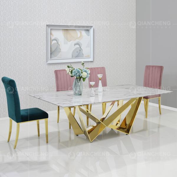 keyword : Modern Dining Room Furniture 12mm Tempered Glass Top Metal Dining Table